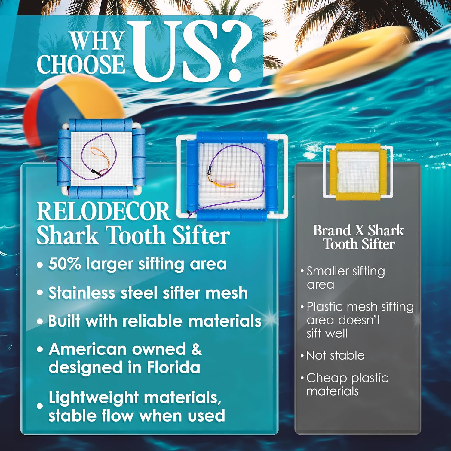 - SIFT LIKE A PRO - Our Shark Tooth Sifter's 14.5" wide and 11" sifting area is equipped with a durable sand screen, making it versatile enough to handle all types of sand and debris. Perfect for any beachcombing adventure, find more treasures now!