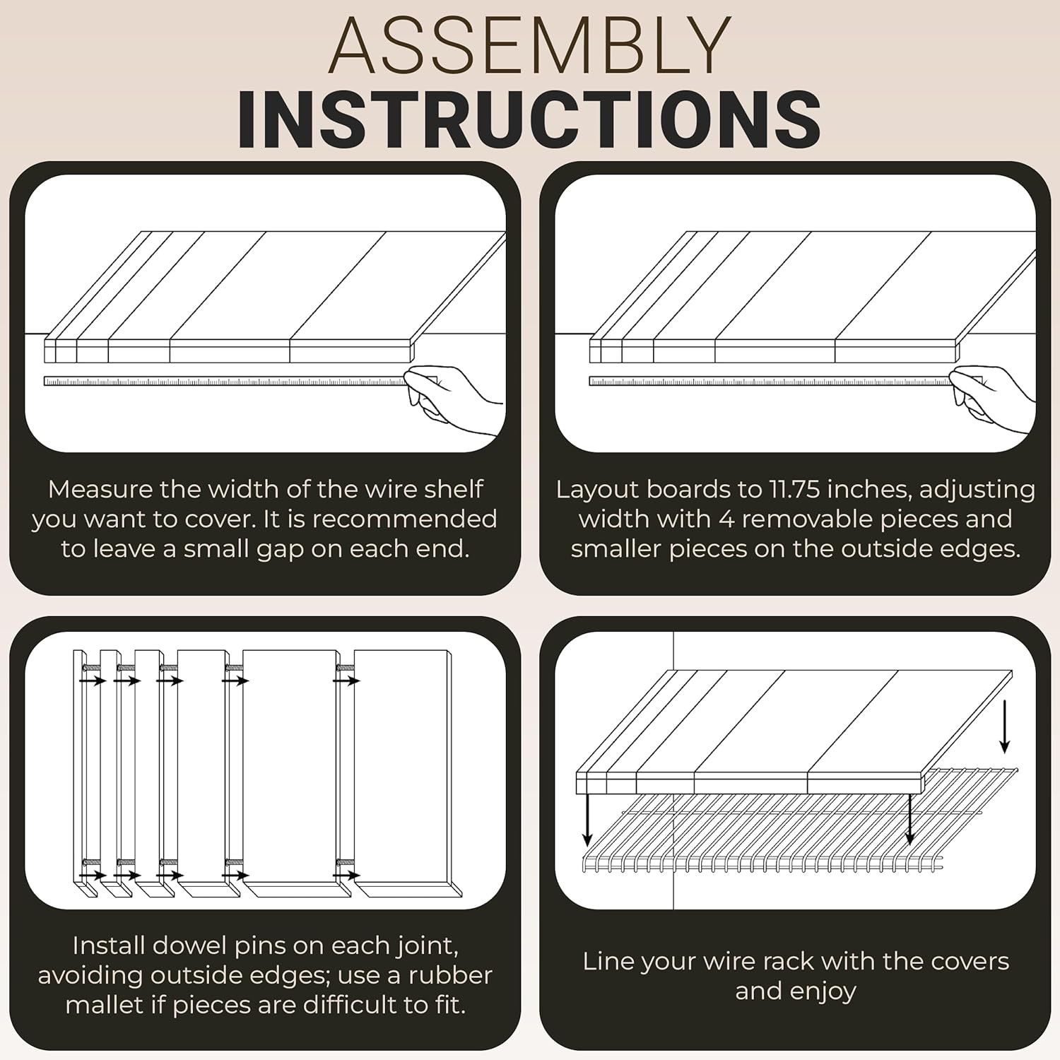 Quick Setup with No Tools Needed: Transform your wire shelving effortlessly by simply placing these covers in position — no tools, adhesives, or complicated assembly required.