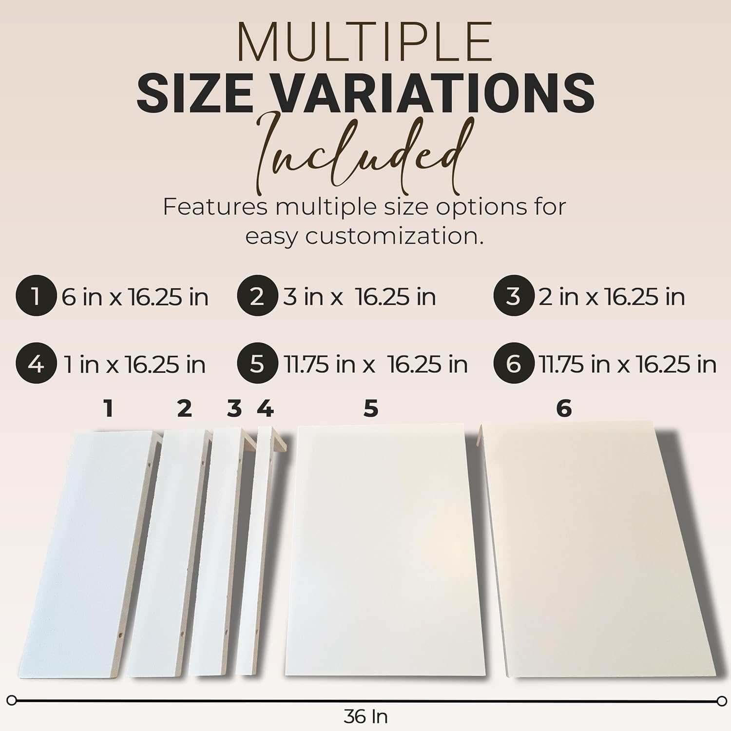 Interchangeable Sizes for Versatility: Includes six pieces in various sizes - (2) 11.75" x 16.25", (1) 11.75" x 16.25", (1) 3" x 16.25", (1) 2" x 16.25", and (1) 1" x 16.25" - to perfectly customize and transform your pantry or storage space.